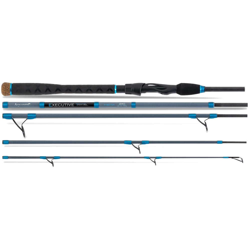 De Executive Travel van Aquantic is een geweldige hengel voor het vissen op zee. Door zijn compacte transportlengte en de meegeleverde hengelkoker is deze hengel perfect mee te nemen op reis. De hengel is voorzien van een 24T carbon blank met een uitstekende actie. Afgewerkt met een kurk/EVA handvat en schitterende blauwe details.